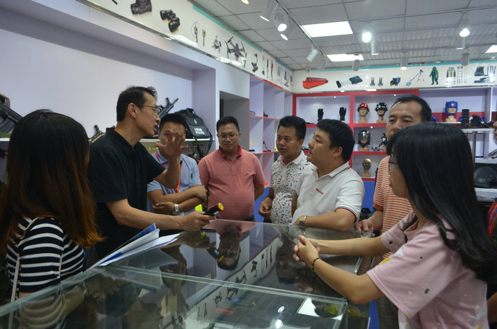 在簡短會談后,守門神董事長孟豪的陪同一行參觀了集團(tuán)警用裝備展廳、安檢設(shè)備生產(chǎn)車間、警用裝備生產(chǎn)車間;期間青商會領(lǐng)導(dǎo)對警用泰瑟電擊槍、自動破窗器、電擊伸縮警棍、抓捕網(wǎng)槍、戰(zhàn)術(shù)防彈衣、單兵夜視儀、多功能防彈盾牌、救援裝備等裝備,守門神警用安檢裝備業(yè)務(wù)部黃經(jīng)理、蔣經(jīng)理對以上警用設(shè)備裝備使用和作用進(jìn)行了介紹并現(xiàn)場演示。
