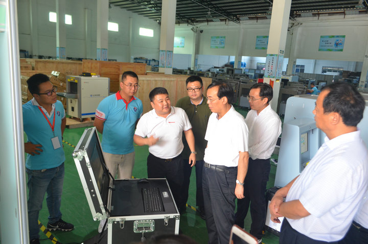 馬正躍書記一行在董事長孟豪、總裁王春麗、執行總裁劉學中的陪同下就我司企業展廳進行了參觀、隨后深入車間查看生產情況,并聽取了孟豪董事長對近年來守門神科技集團的發展及科研成果情況的匯報。