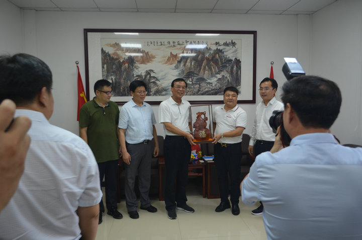 盛夏7月,守門神科技集團迎來中共河南省漯河市委書記馬正躍、漯河市委常委市委秘書長孔祥智、漯河市臨潁縣委書記陳紅陽一行考察我公司,公司董事長孟豪、總裁王春麗熱情接待了家鄉領導。