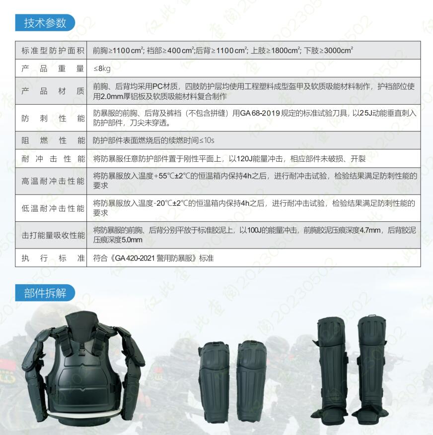 防暴服主要用于執行防暴任務時,為執法人員提供自身防護。能有效防護利器、棍棒、投擲物對人體大部以及關鍵部位的襲擊,同時具有穿著靈活自如、著裝時間短及方便攜行等優點。